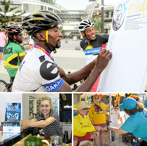 Mientras la Costa Dorada de Australia es la sede de los Juegos de la Mancomunidad de Naciones, el equipo de Un Mundo sin Drogas está allí para que diga no a las drogas.
